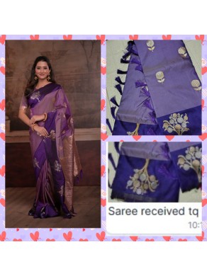 Brown Soft Digital Print Fancy Linen Silk Saree