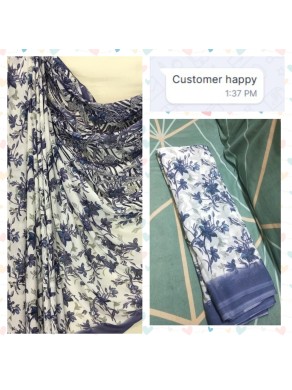 Fancy Weightless chiffon saree - White