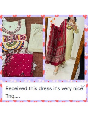 Fancy vichithra silk kurti pant dupatta Set - Violet