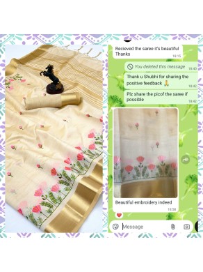 Crunchy Crush Floral Embroidery Saree - Light Yellow