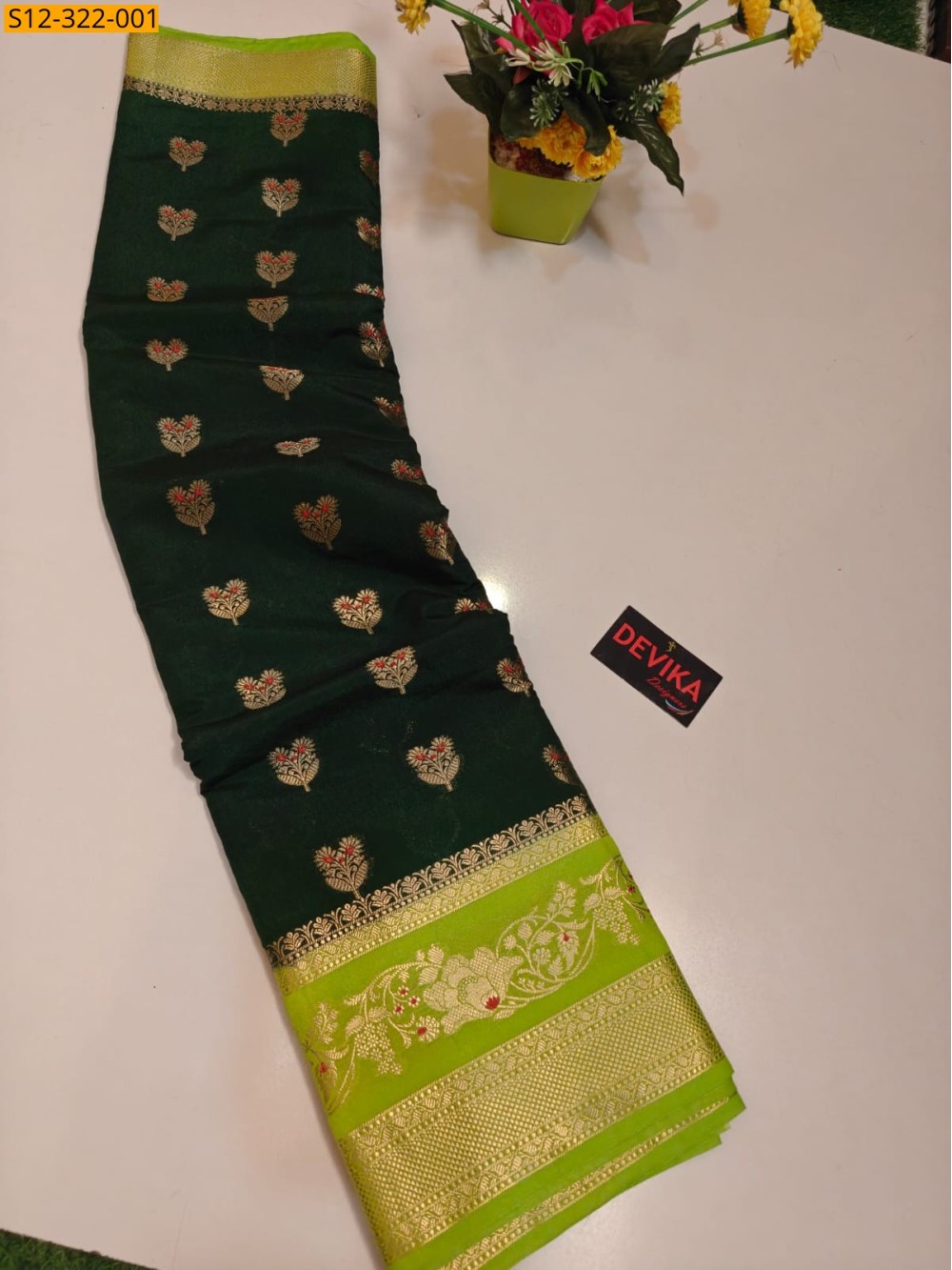 Green Banarsi kaanchi border tissue embroidery Saree