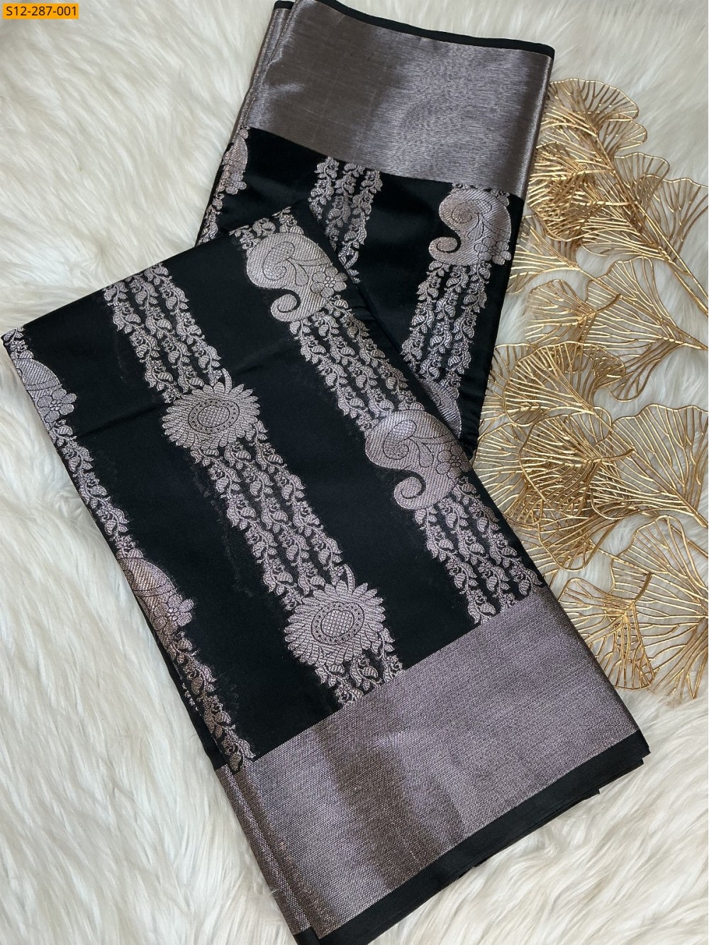 - Full body silver zari weaving design