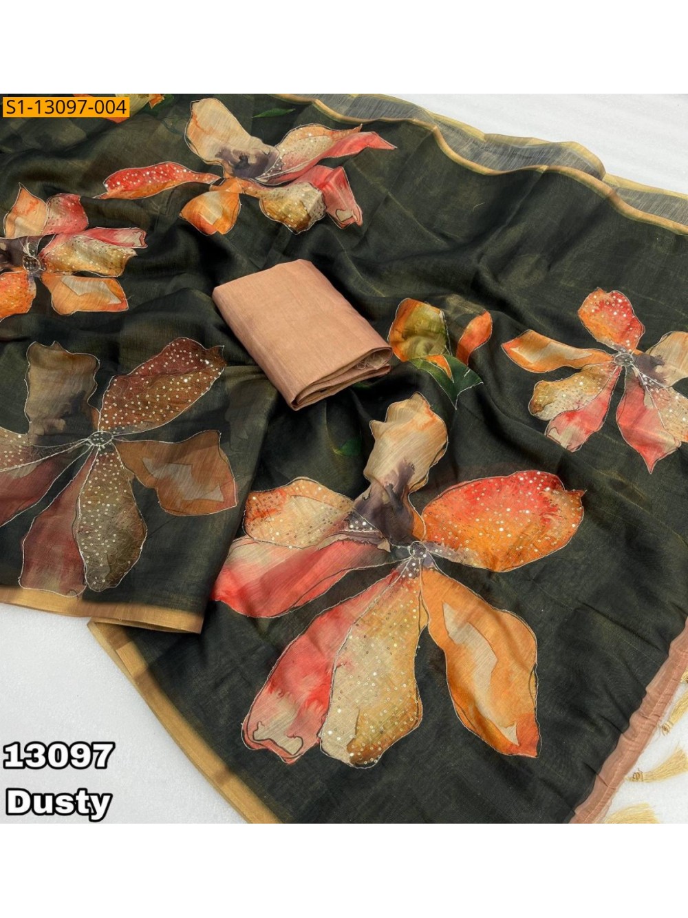 Dusty Green Erode Tissue Silk Floral Print Saree