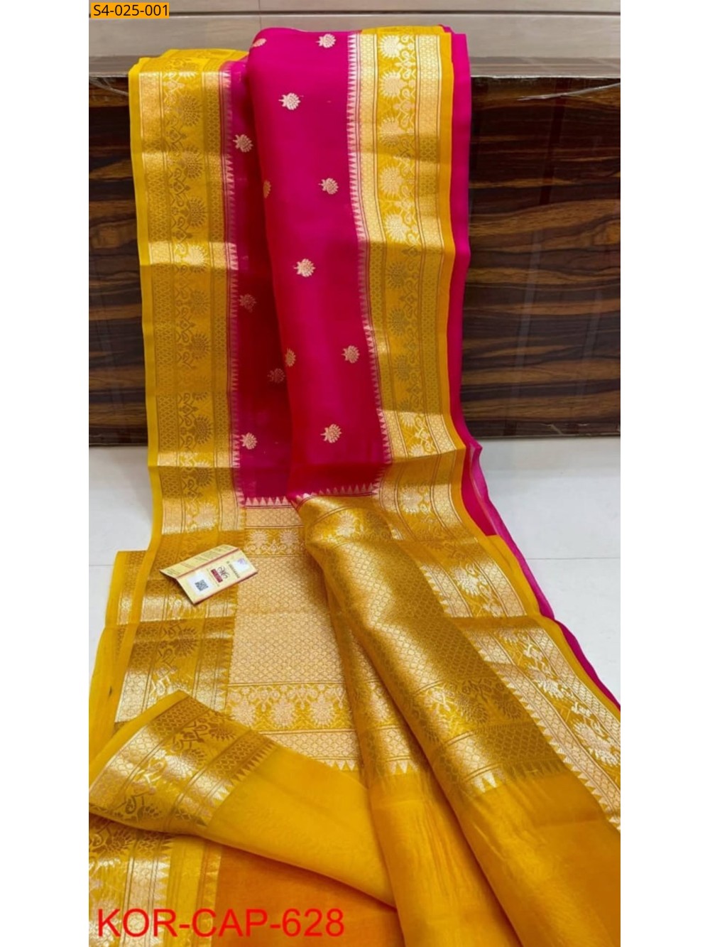 Pink Fancy Banarasi Soft Organza Silk Saree