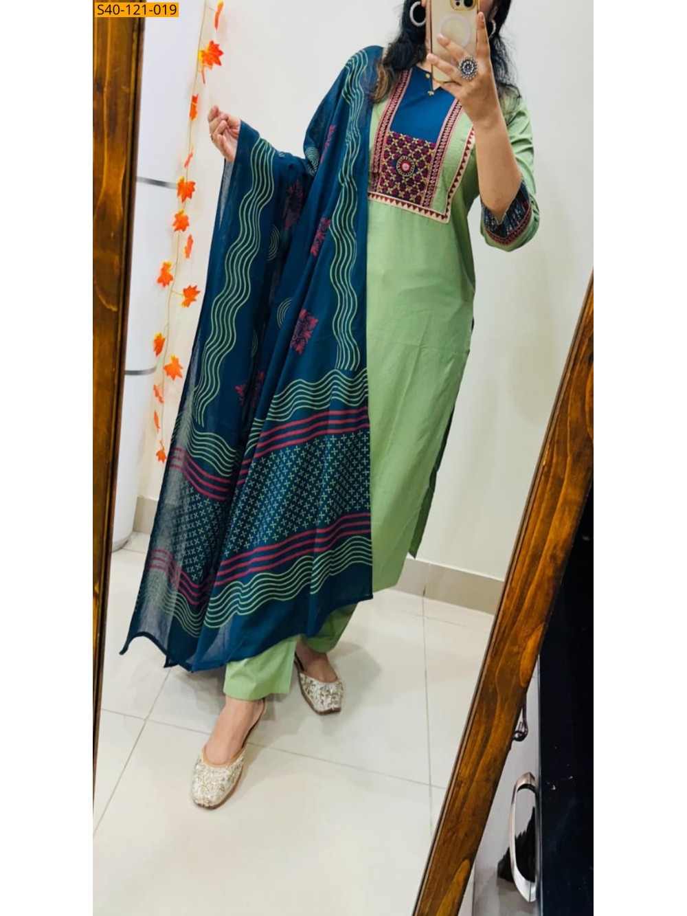 Pista green Fancy Dhabu Cotton Suit 3 Piece Set