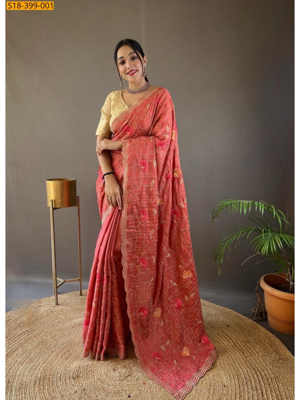 - With embroidery jaal ,floral design allover the saree