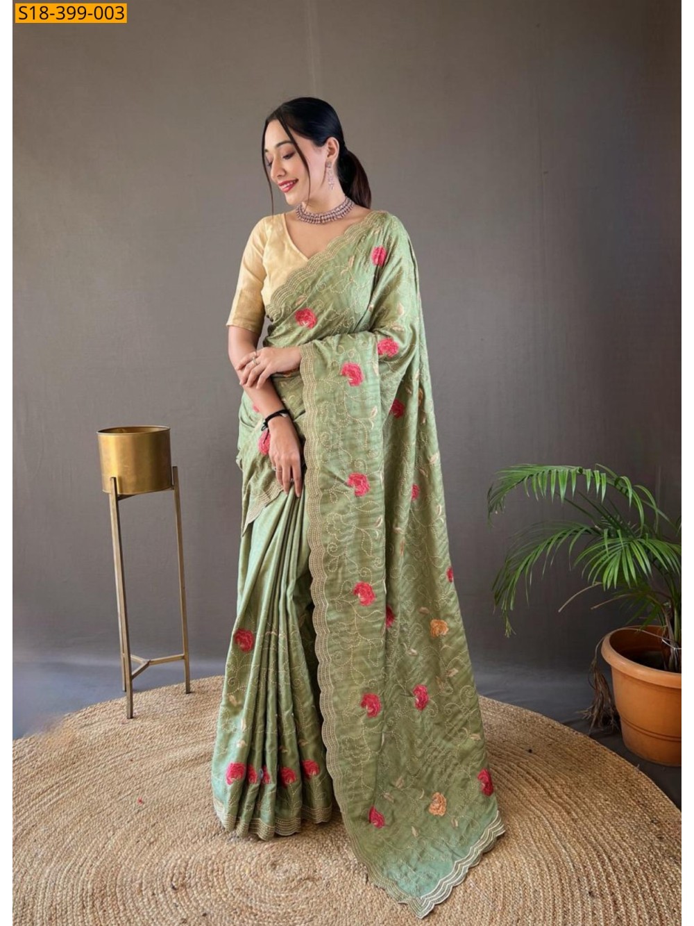 - With embroidery jaal ,floral design allover the saree