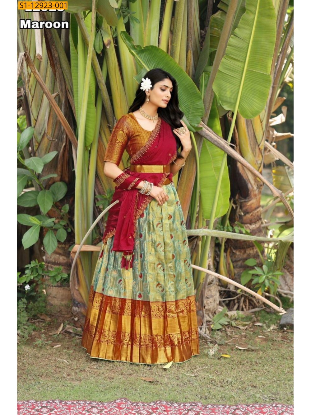 Green Handloom Chanderi Cotton Top and Dupatta Material