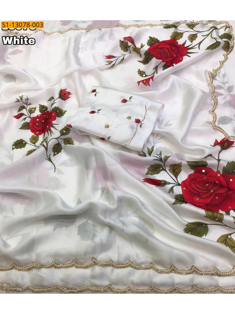White Satin georgette floral printed saree