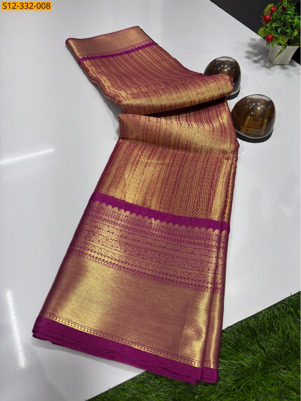 - Golden zari weaving design border