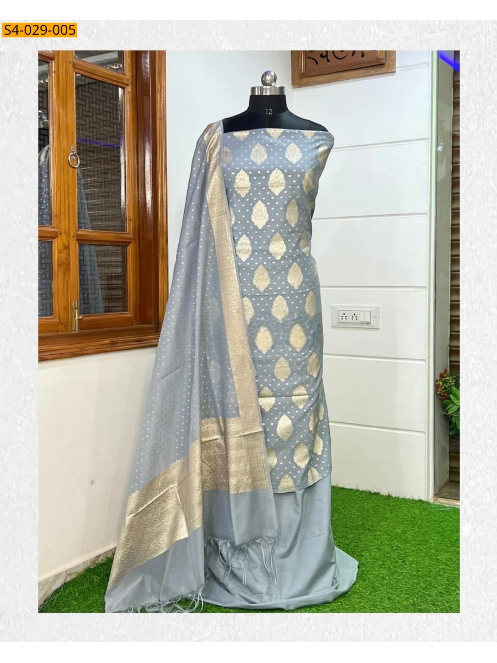 Gray Banarasi Chiniya Silk Mulberry Suit