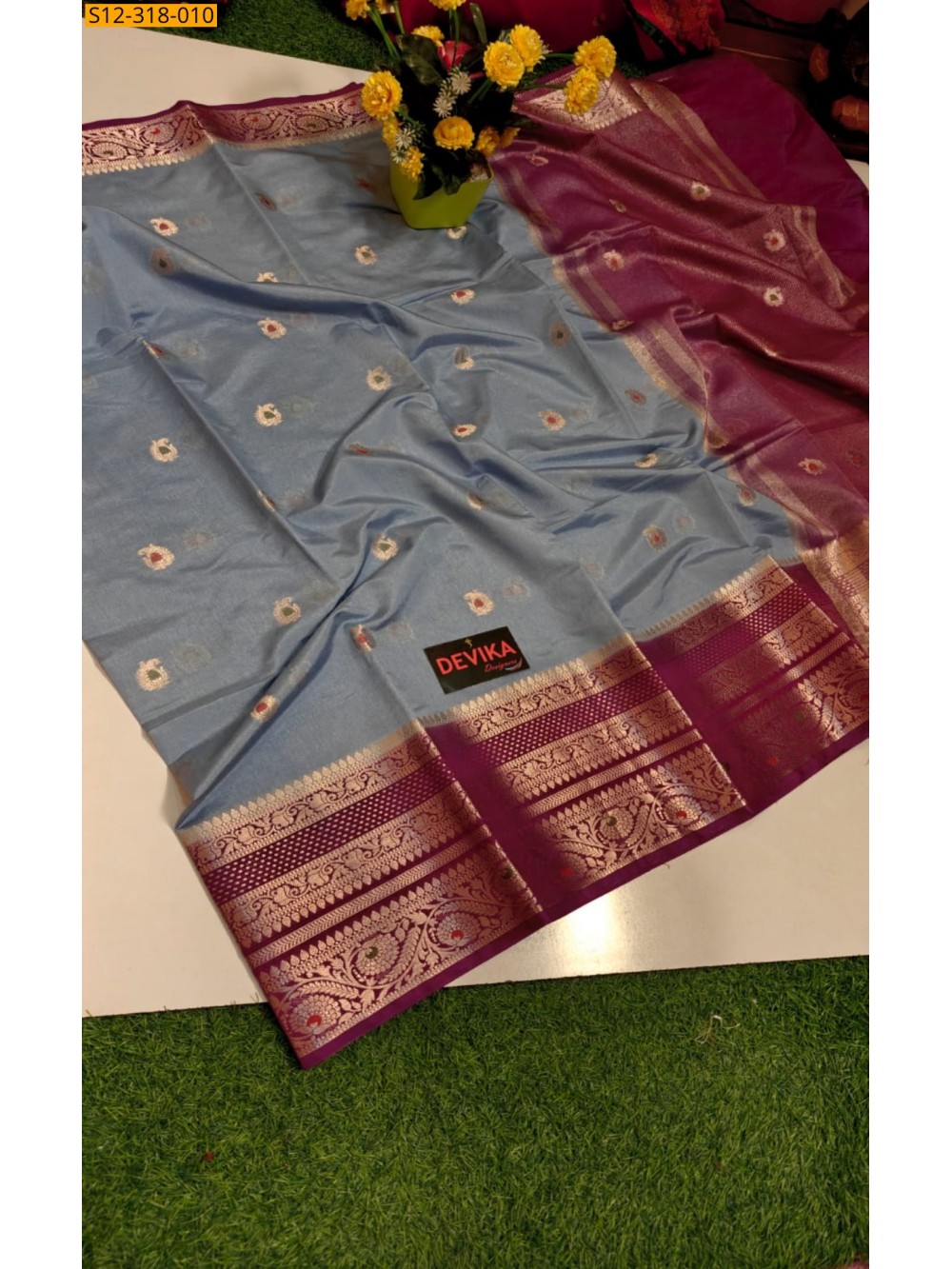 • Full body golden zari weaving small butti design