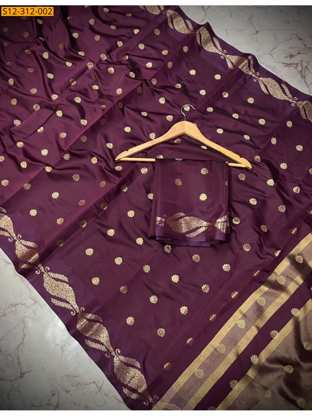 Maroon Banarasi semi kataan soft silk Saree