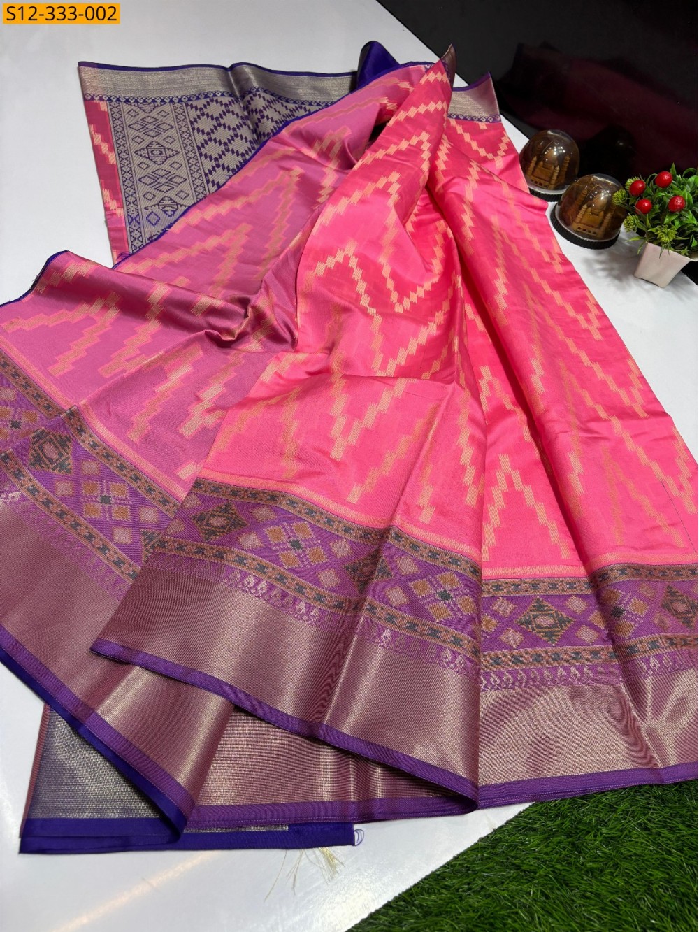 - Bigside Golden zari with Alfi weaving and small side zari weaving contrast border