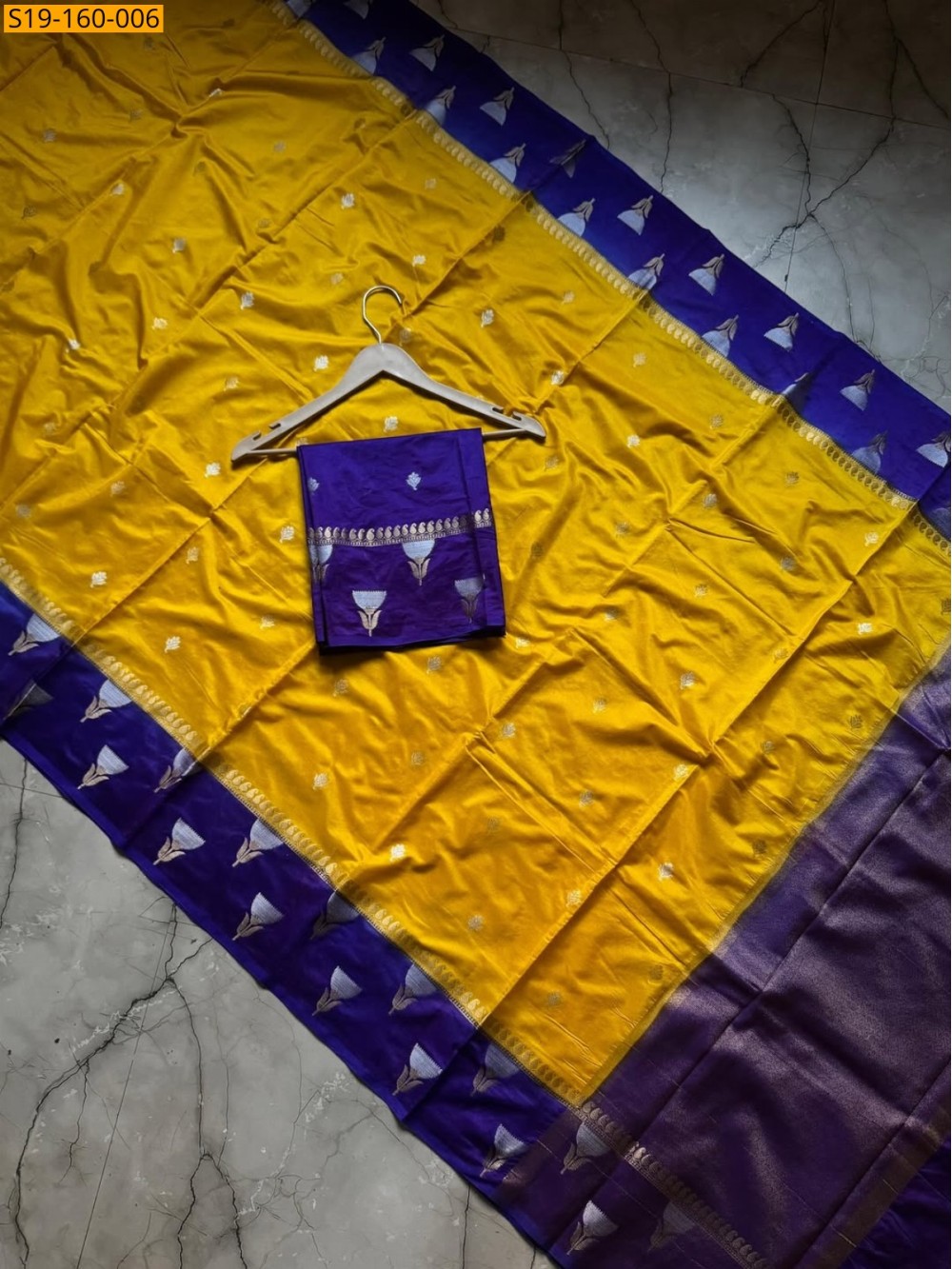 Yellow Banarasi semi katan soft silk Saree