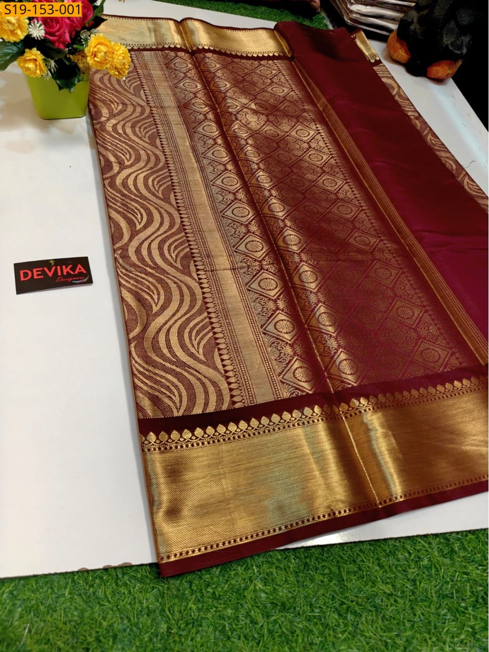 - Full body zari weaving wavy design