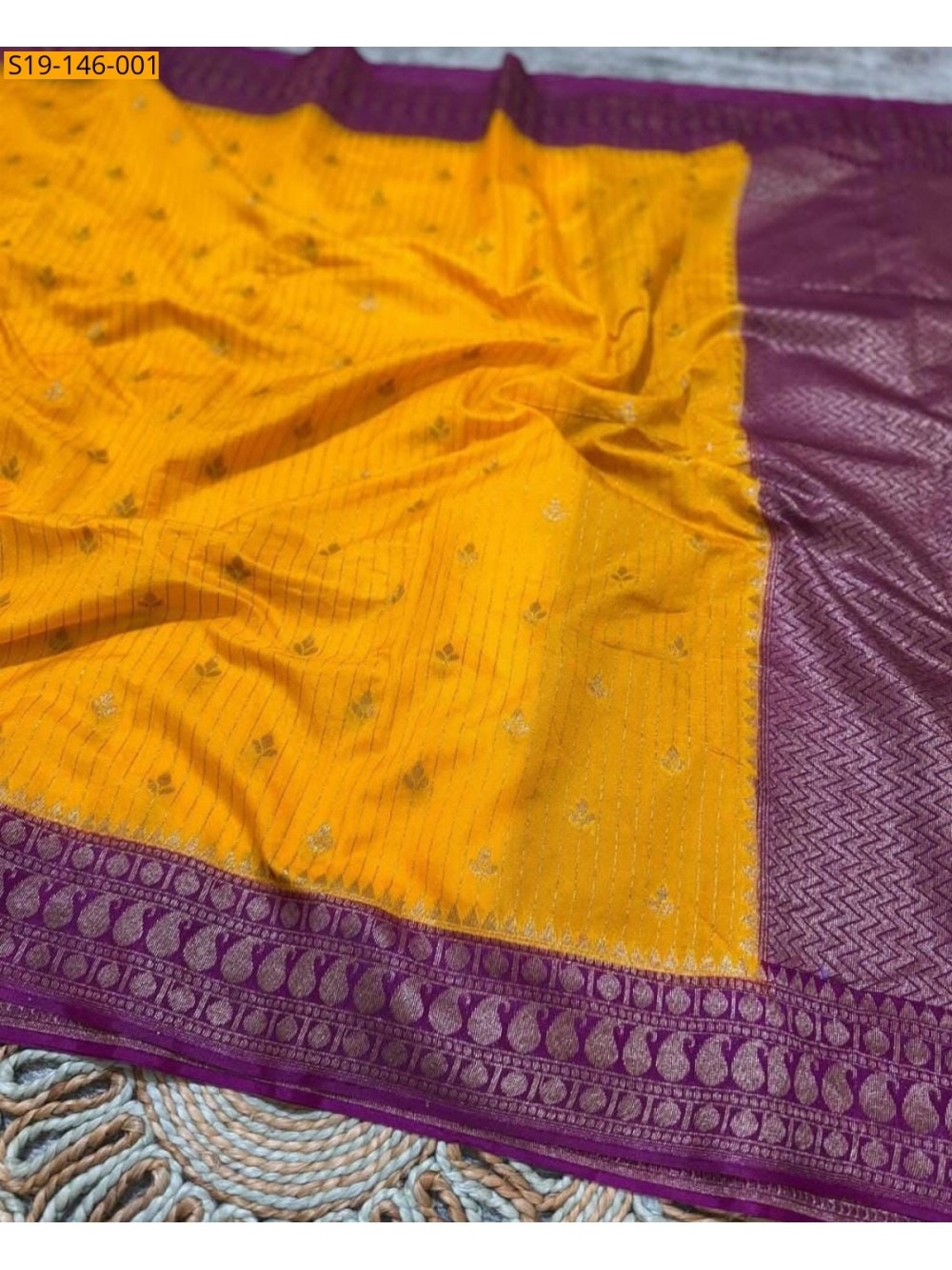 Yellow Banarasi Soft Raw Mango silk saree