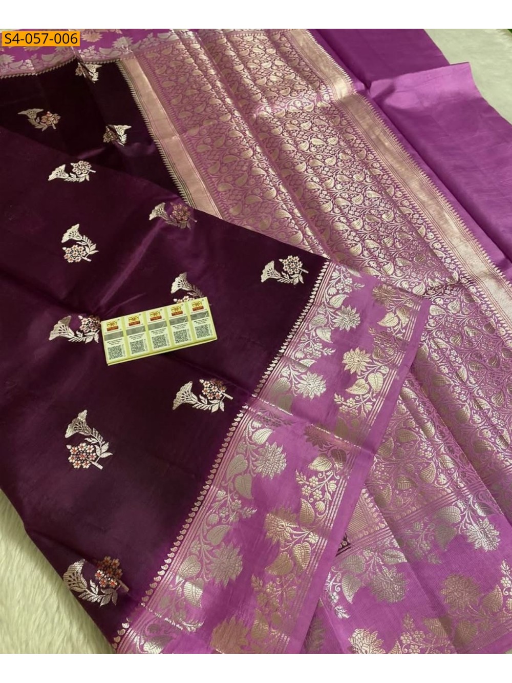 Magenta Banarasi Soft Raw Mango Silk Sarees