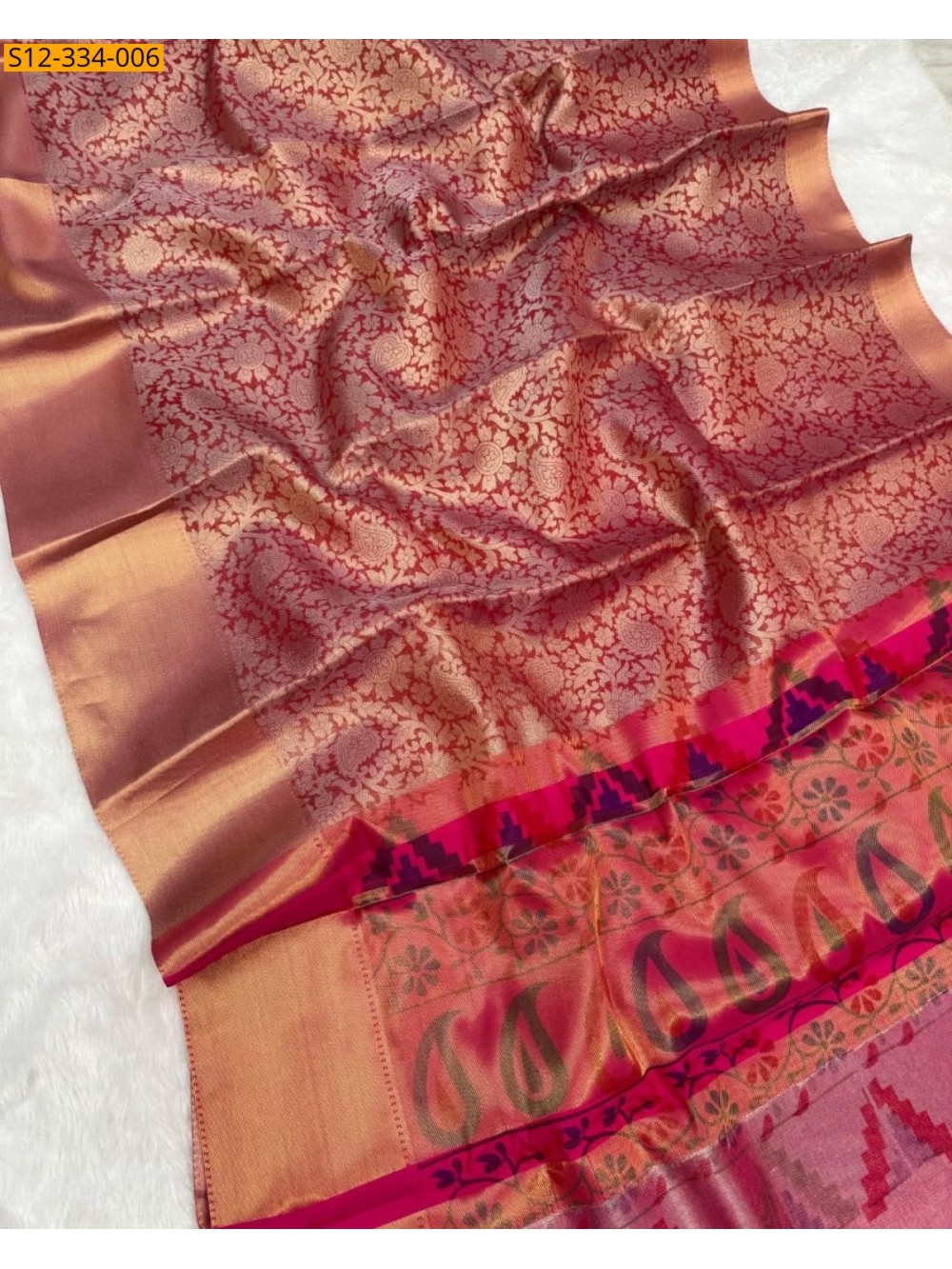 Copper Banarasi tissue printed soft silk Saree