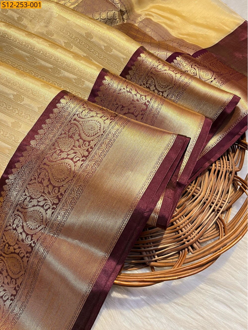 Gold Banarasi tissue soft silk saree