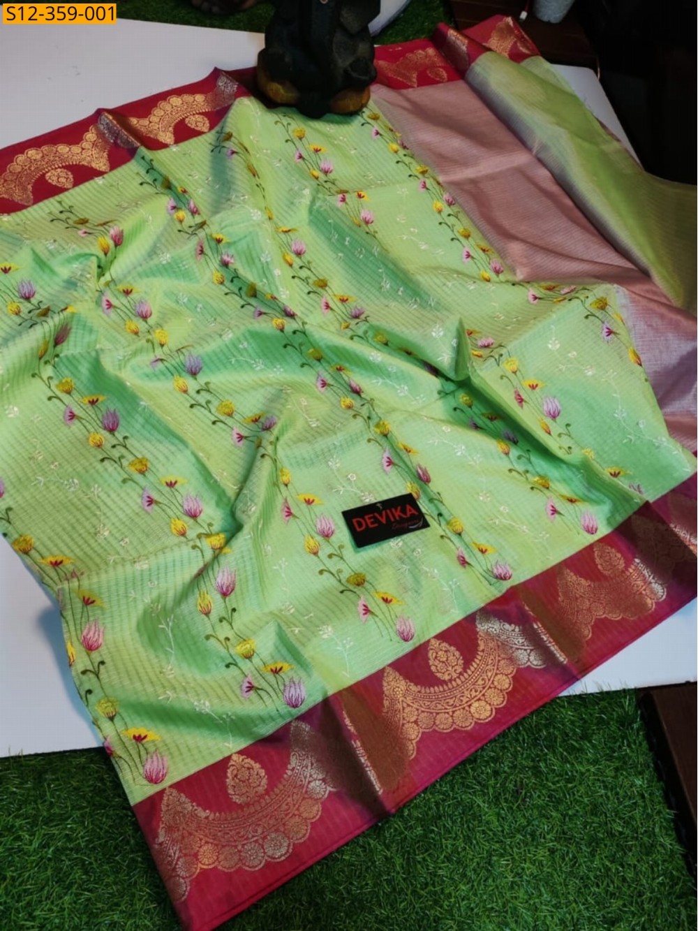Tags: Banarsi kota chek embroidery soft silk Saree