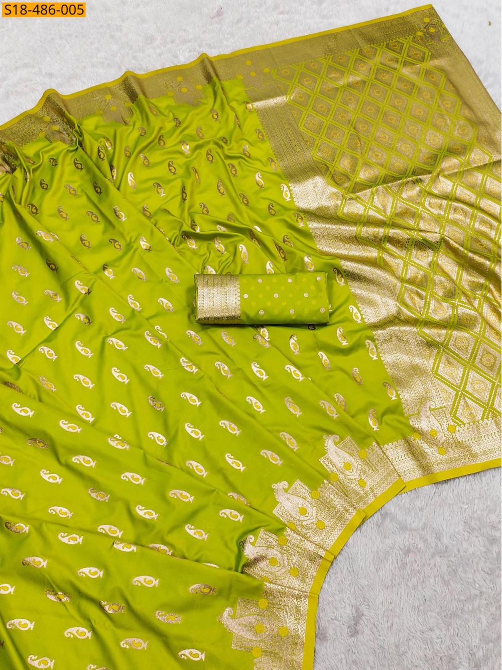 Parrot green Fancy banarasi silk Saree