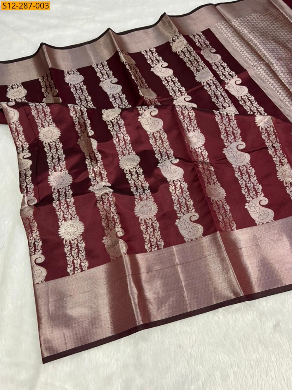 Maroon Banarsi semi kataan soft silk Saree