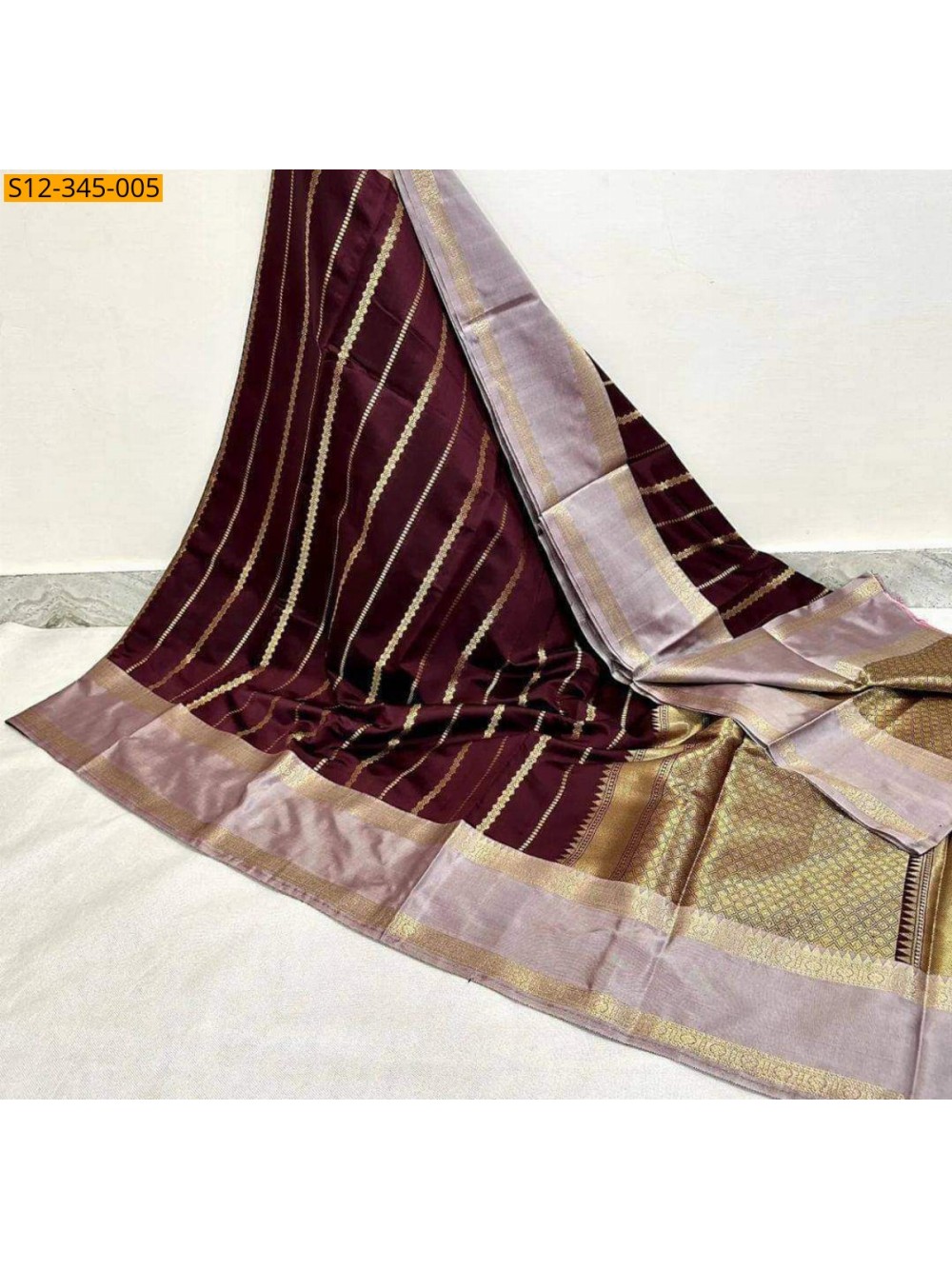 Maroon Banarsi semi kataan soft silk Saree