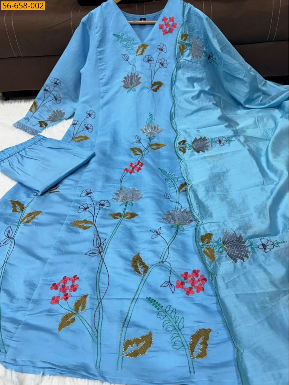 - Flower embroidery design all over kurti