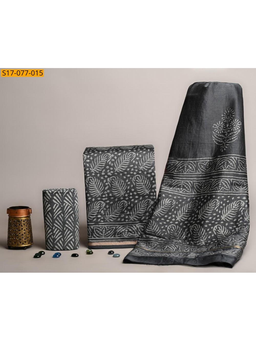Gray Chanderi silk suit set(Unstiched)