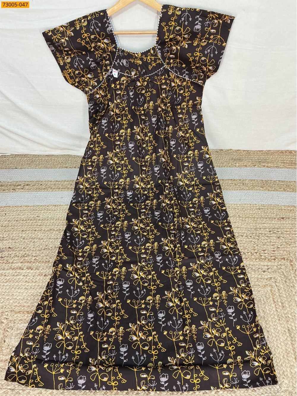 Brown Cotton Printed Galaxy Nighty