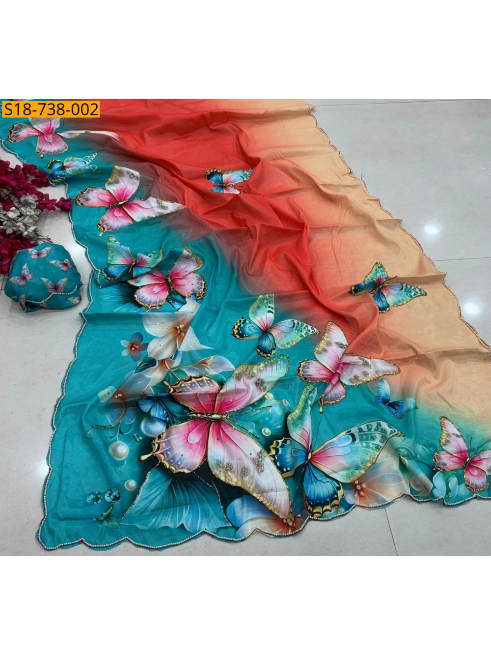 - With beautifull digital butterfly & flower printed Hand Cutdana Work allover the saree
