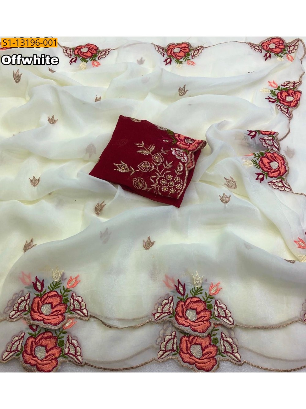- With Contrast embroidery work blouse