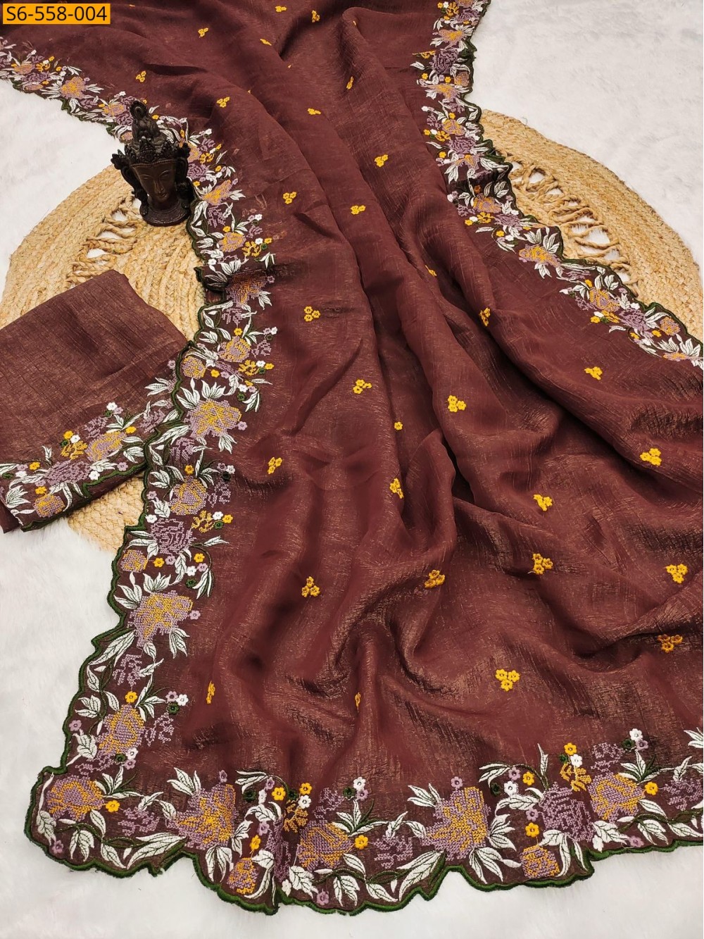 Brown Crunchy silk cutwork saree