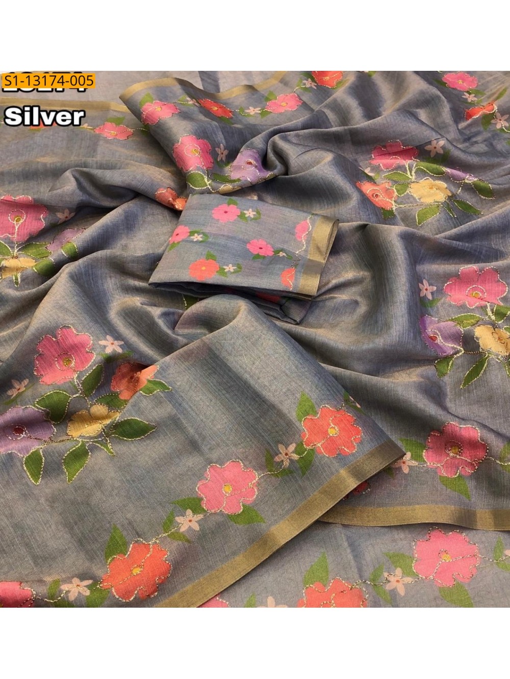 • Floral printed design all over the saree