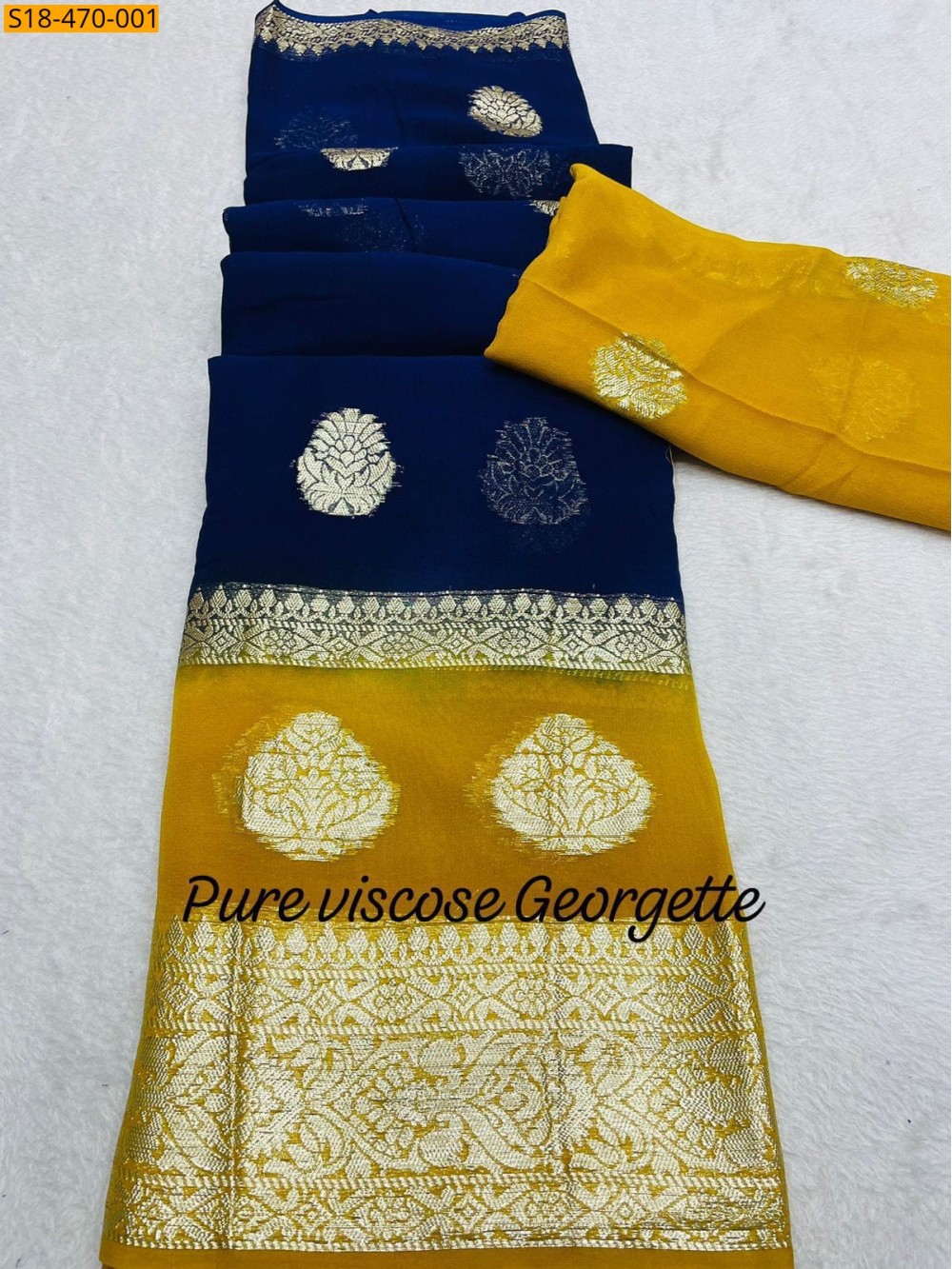 Dark Navy Fancy 2D Viscose Georgette Saree