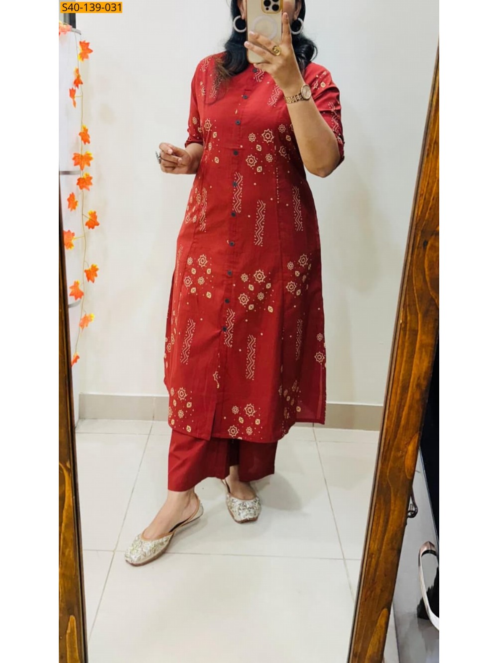 Red Fancy Aline cotton Kurti set