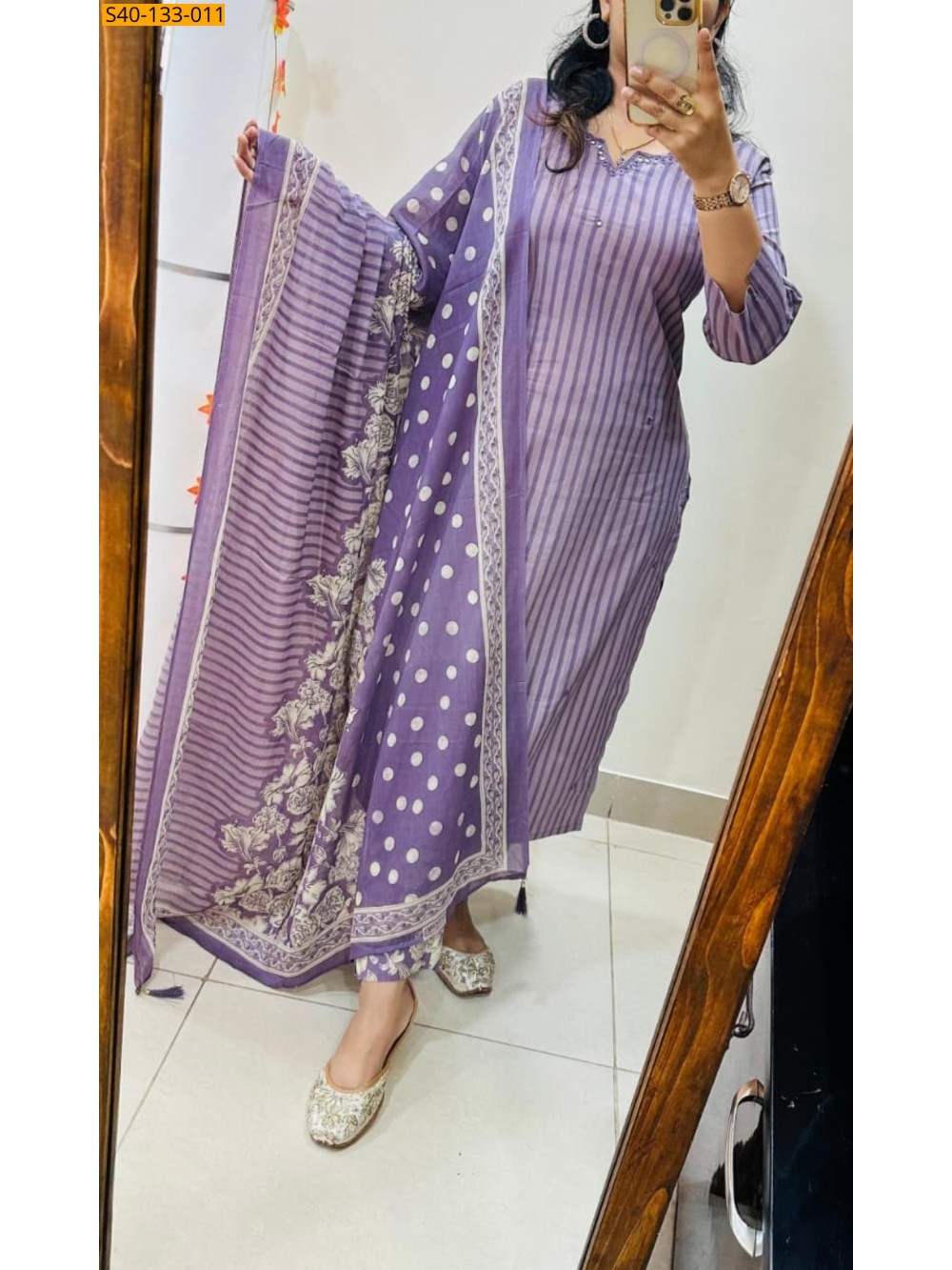 Lavender Fancy Azrakh cotton kurta 3 piece suit set