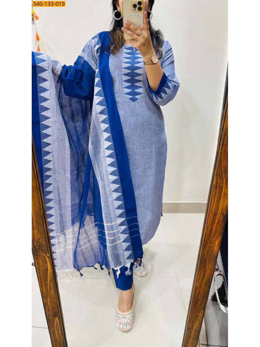 - Fancy Azrakh cotton kurta 3 piece suit set