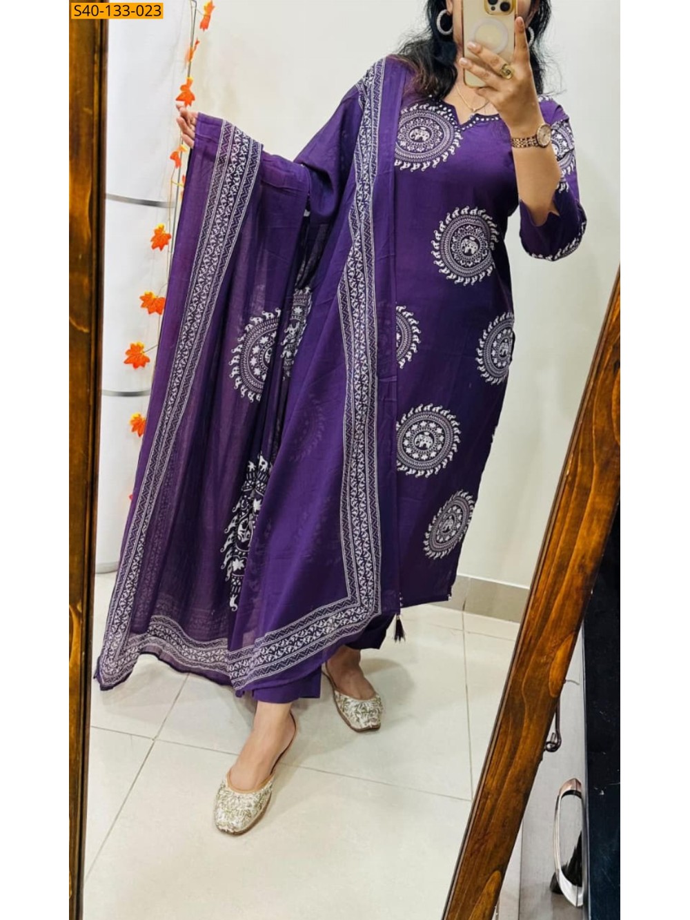 Violet Fancy Azrakh cotton kurta 3 piece suit set