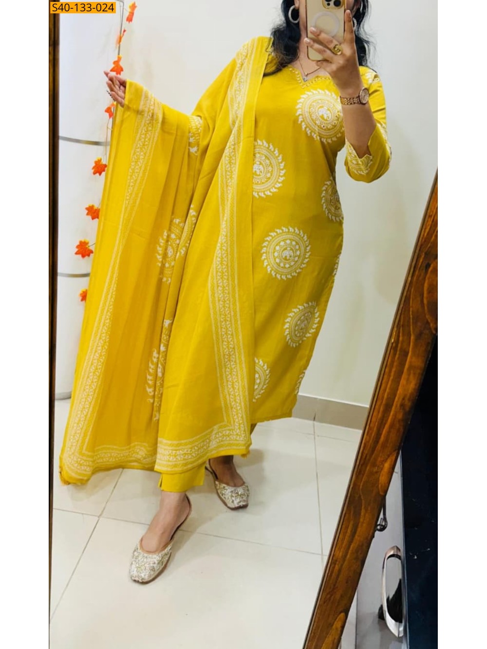 Yellow Fancy Azrakh cotton kurta 3 piece suit set