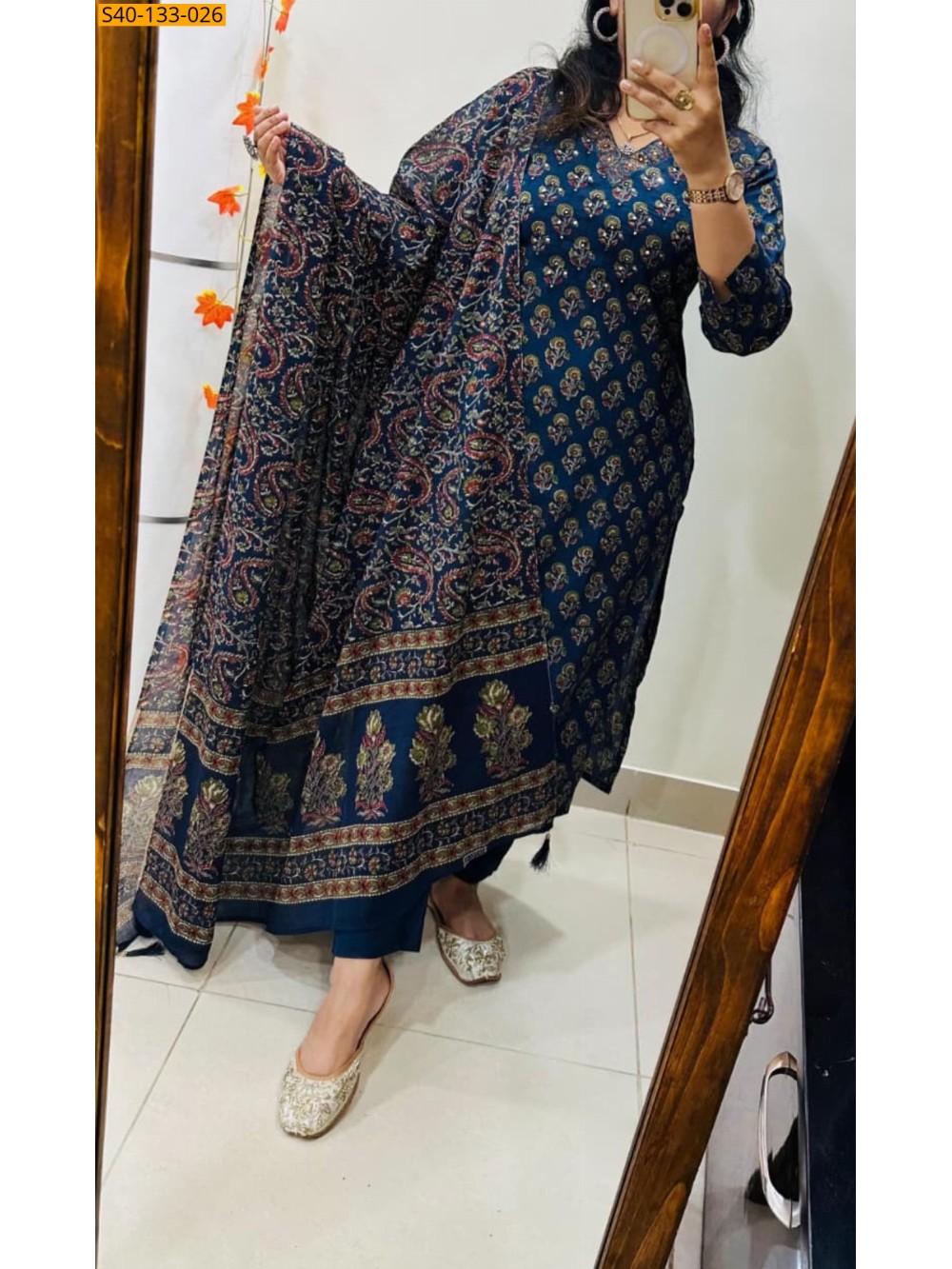 Morpitch Fancy Azrakh cotton kurta 3 piece suit set