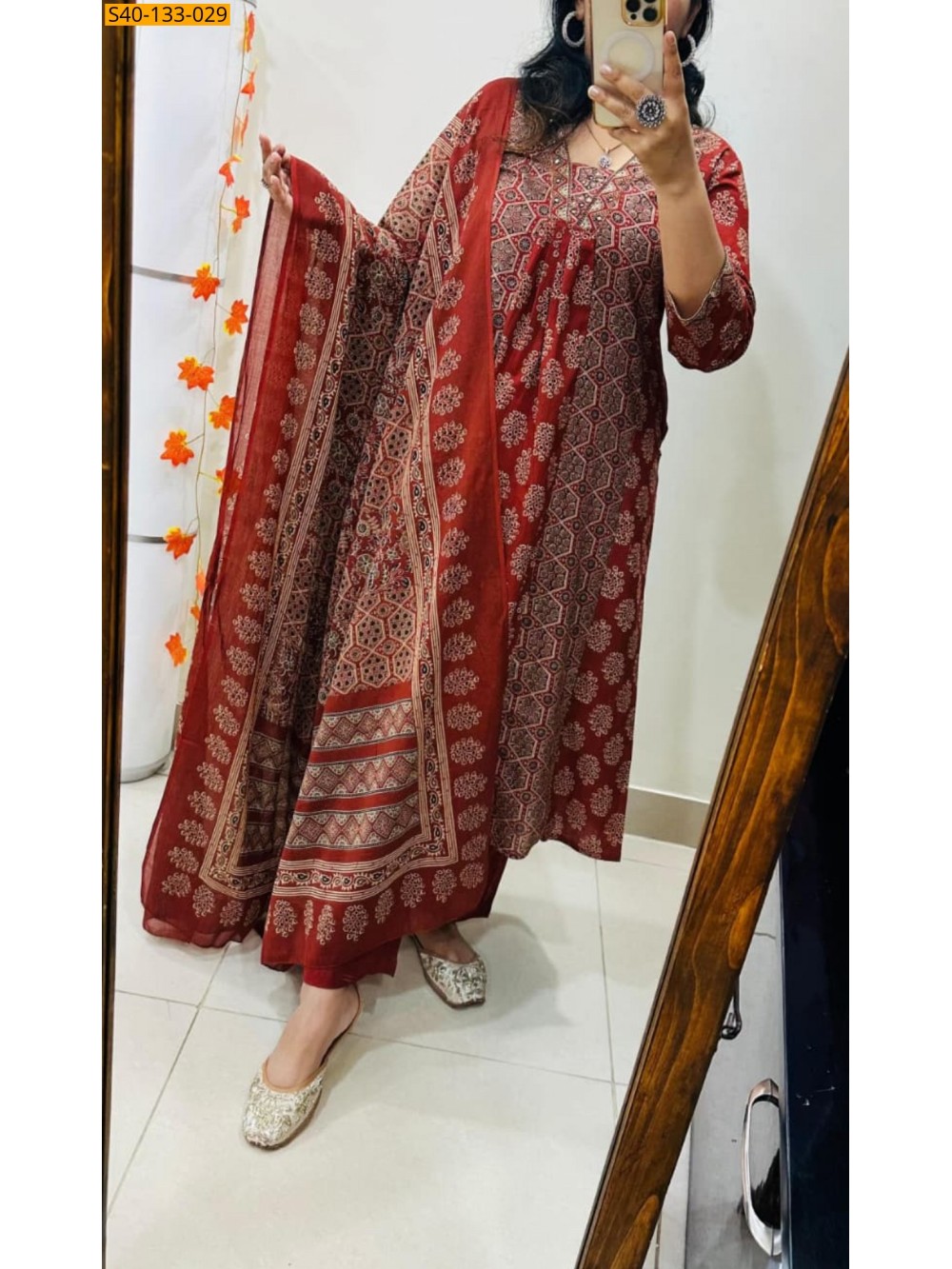 Maroon Fancy Azrakh cotton kurta 3 piece suit set
