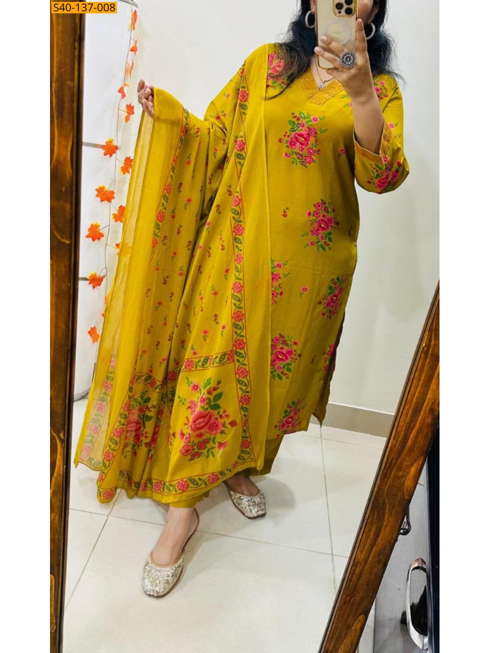 Mustard Fancy Azrakh cotton kurta 3 piece suit set