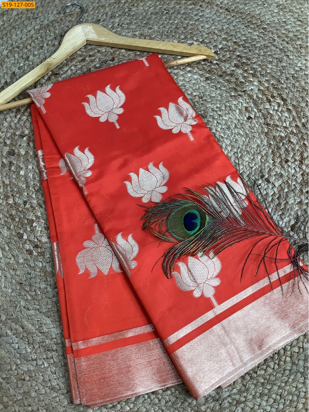 - Zari weaving lotus design allover saree
