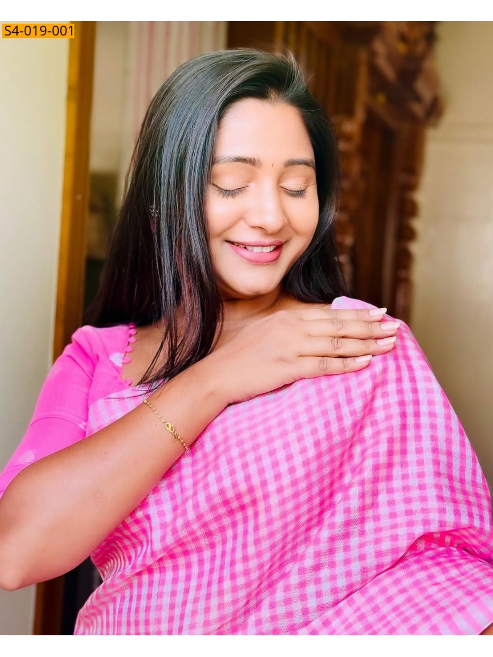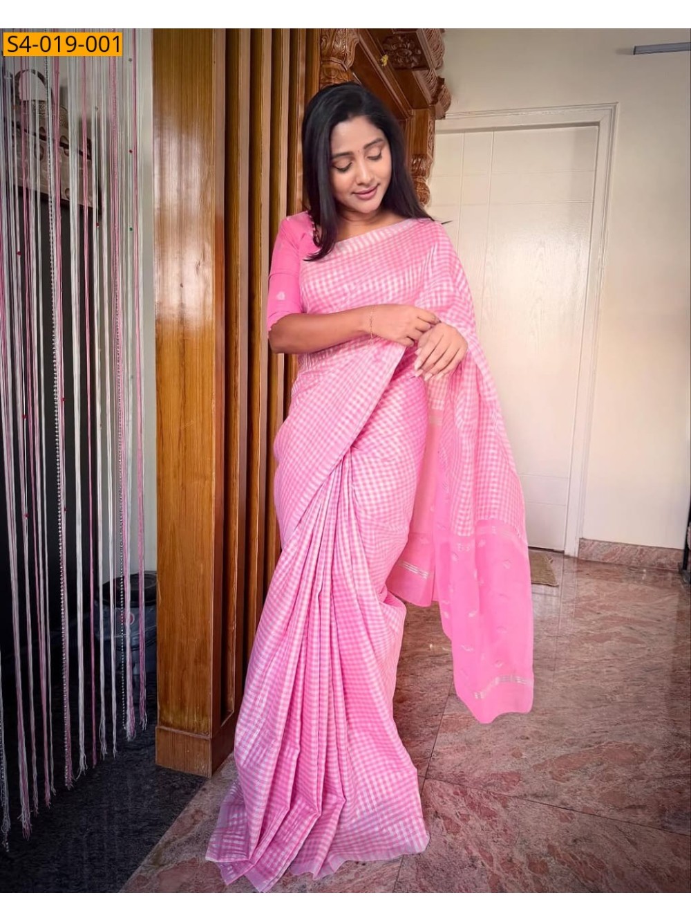 Pink Fancy Banarasi Soft Cotton Tissue Saree