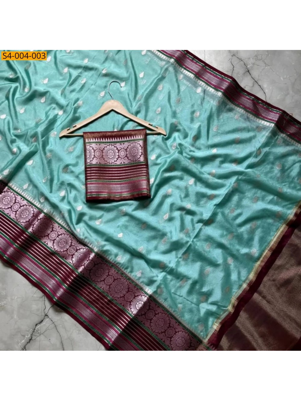 Sky blue Fancy Banarasi Soft Warm Silk Saree