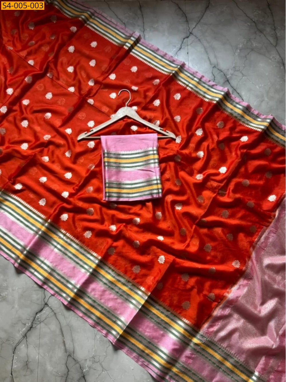 Orange Fancy Banarasi Soft Warm Silk Saree