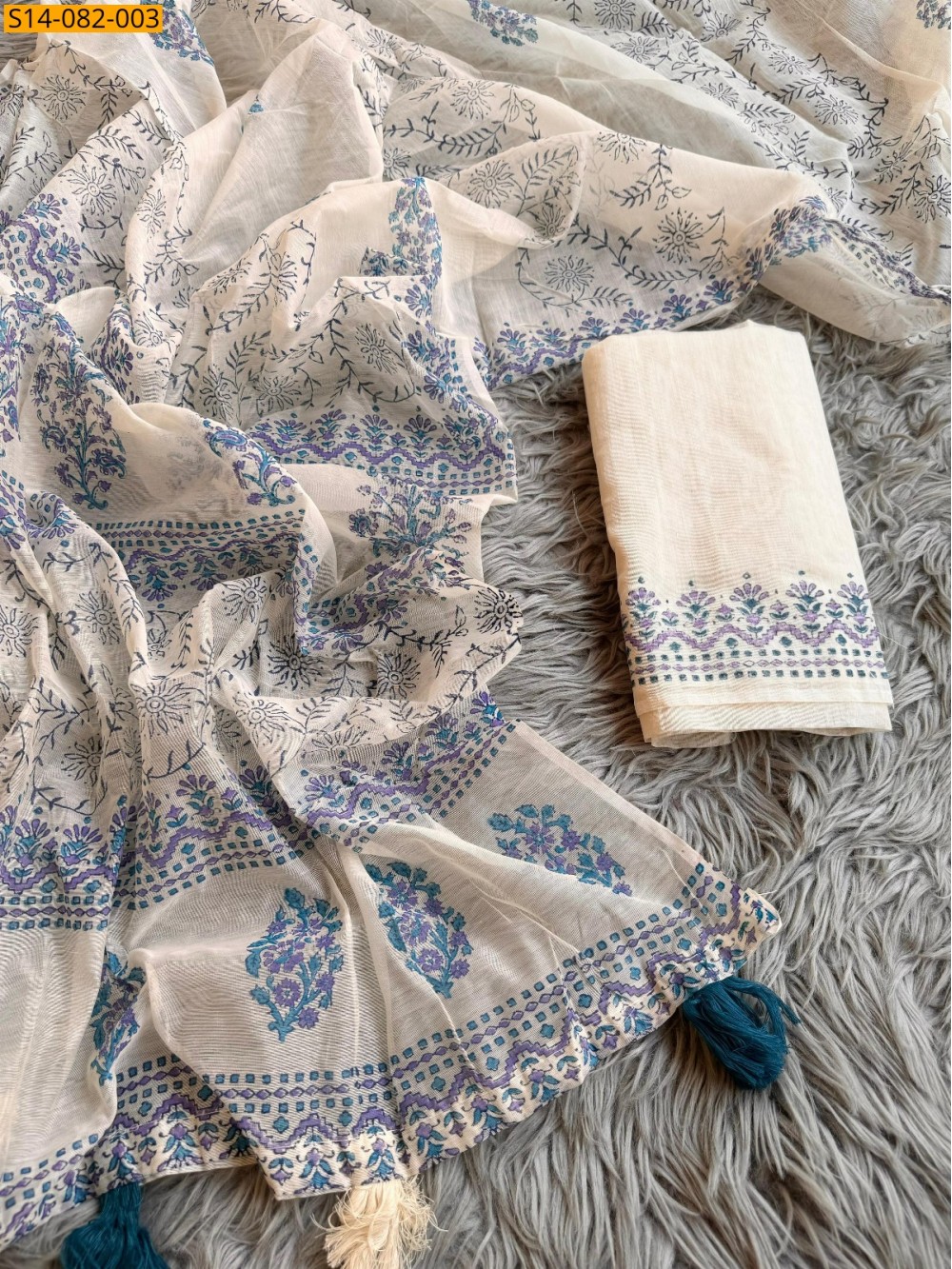 - Batik Jaipuri Printed design all over the saree