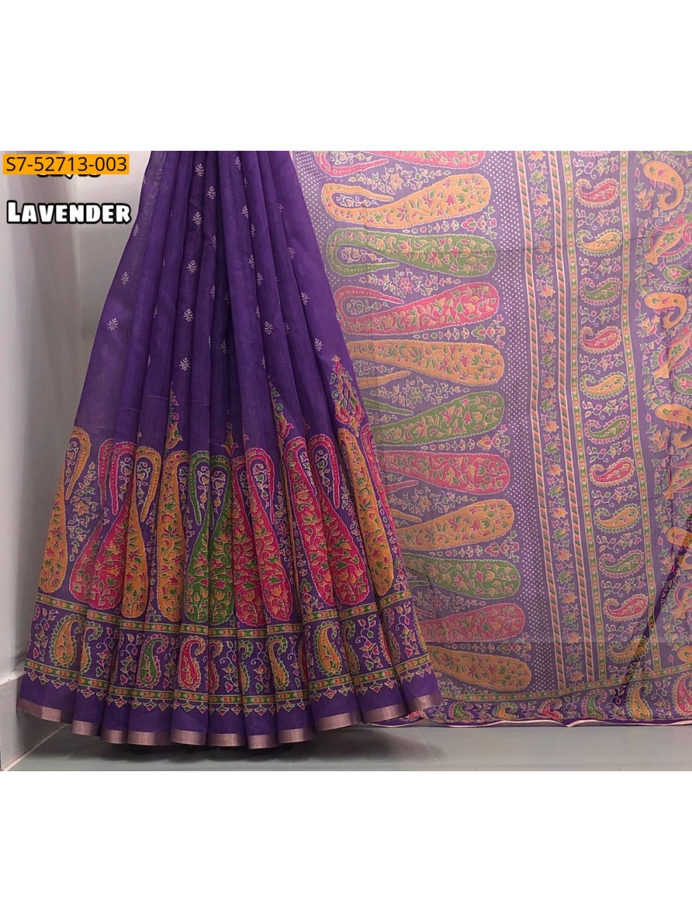 Lavender Fancy chenderi Printed Saree